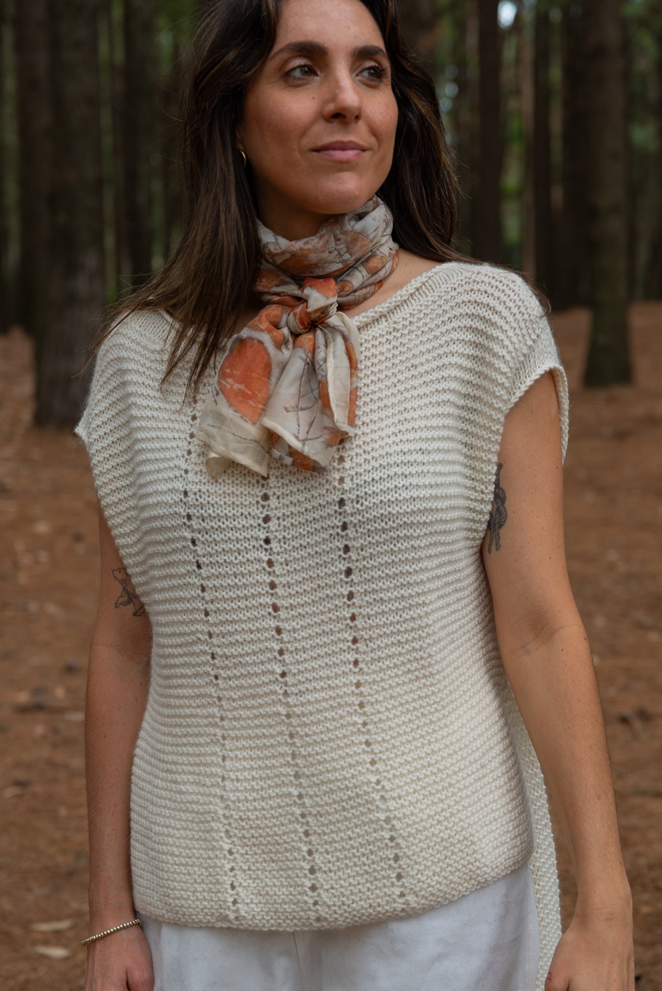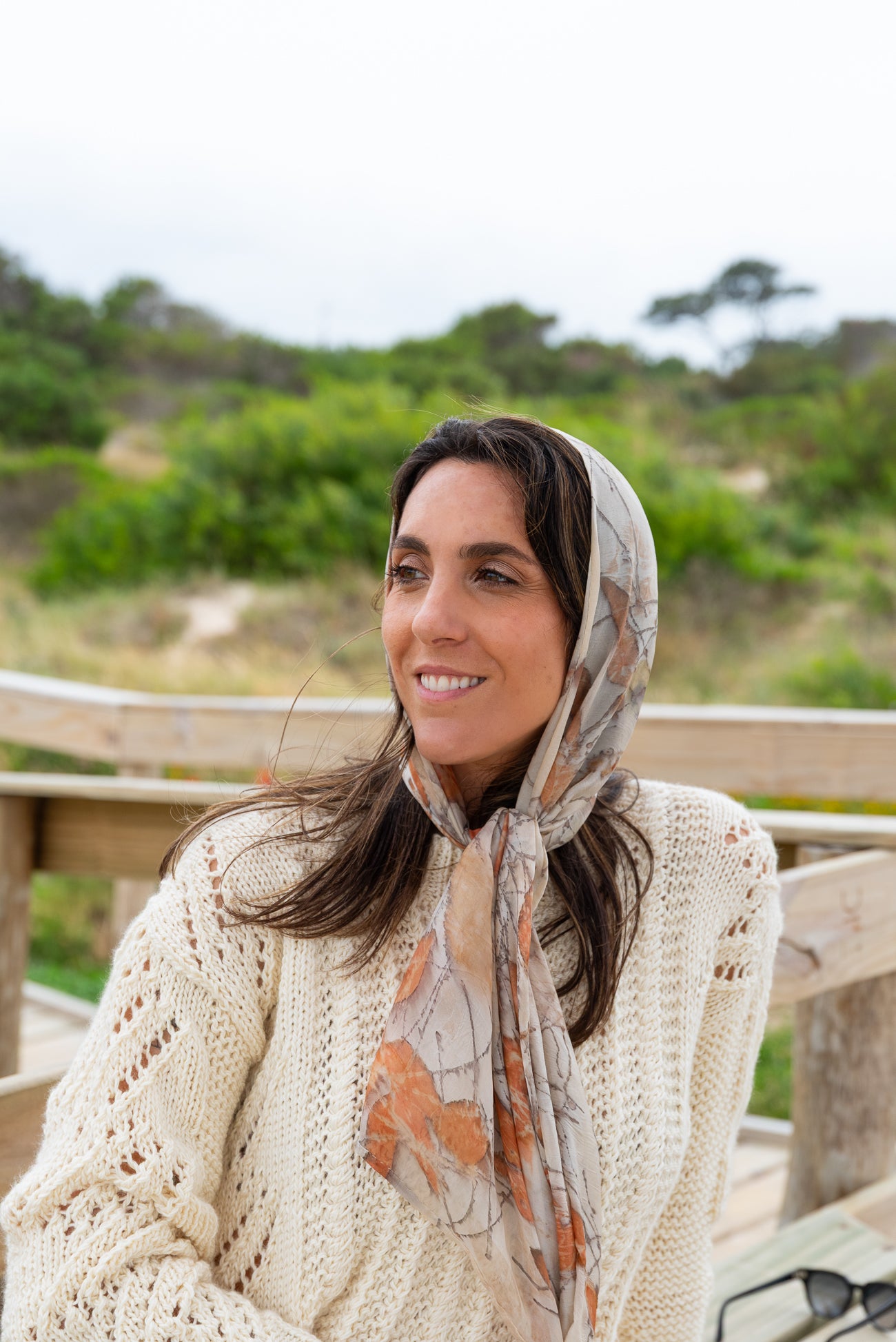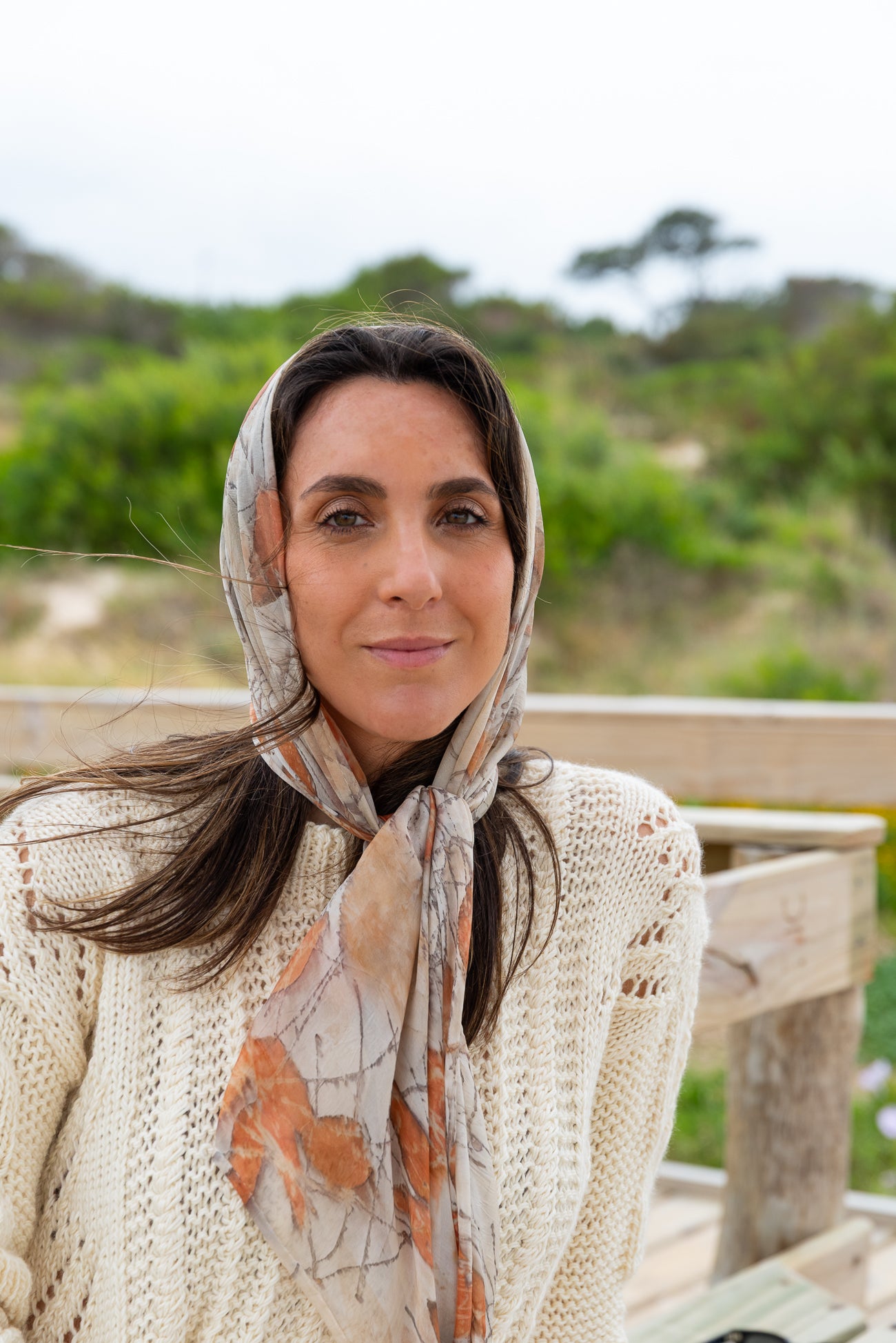Confeccionado en 100% seda, suave, liviana y etérea.